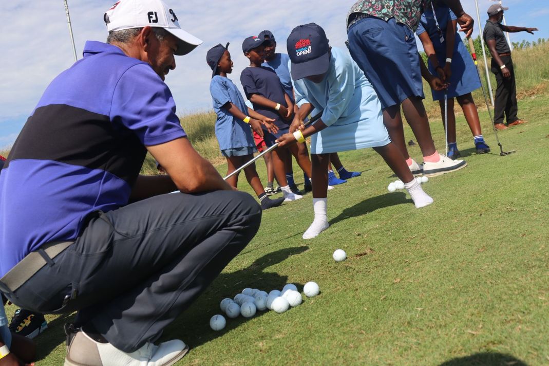 The golf coaching clinic took place at the Durban Country Club ahead of the main tournament.