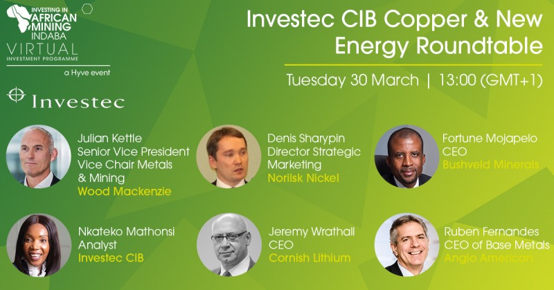 The roundtable is open to approved participants of the Virtual Investment Programme run by Mining Indaba, register now. For more information, please click here.