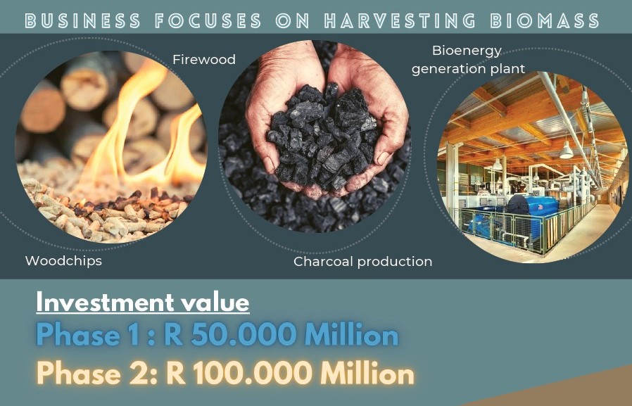 The business focuses on harvesting biomass for firewood, woodchips, charcoal production and for the establishment of a bioenergy generation plant.