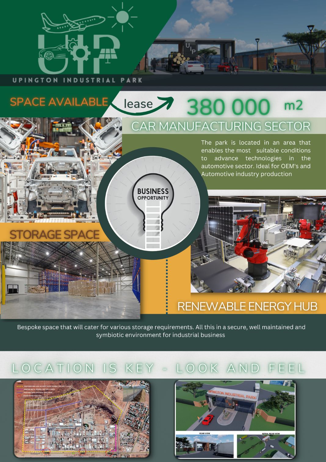 Upington Industrial Park forms part of the Northern Cape Industrial Corridor that extend from Kathu Industrial Park, Namakwa SEZ in Aggenys to the Boegoe Bay Harbour.