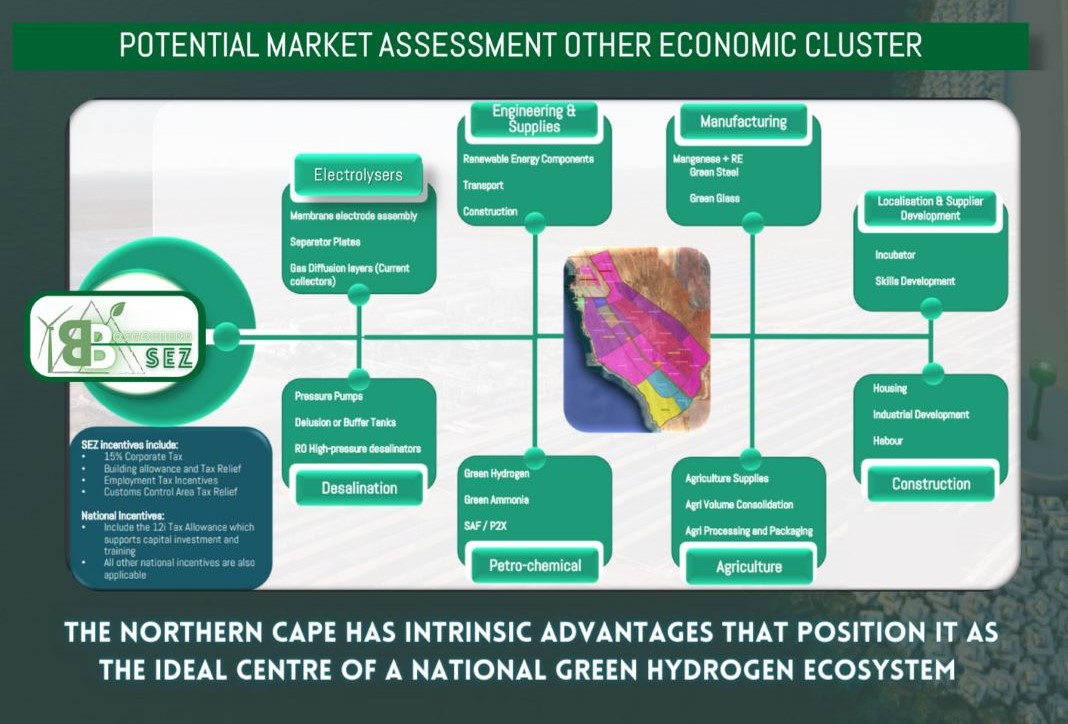 The Boegoebaai Special Economic Zone in the Northern Cape is envisaged as a hub for the production and export of green hydrogen. The project is of strategic importance and will enable the overarching attainment of a Just Energy Transition.